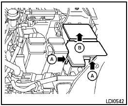 3. Remove the fuse box cover by pushing the tabs A and lifting the cover up from the front B .