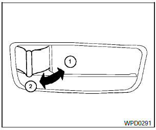 To lock the door without the key, move the inside lock knob to the lock position (1) , then close the door.